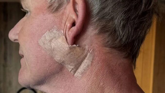 “I promise you it’s not a face lift! I’d need a refund…” Ramsay wrote in the post showing a photo of the side of his face bandaged below his ear, reaching from his face down to his neck.