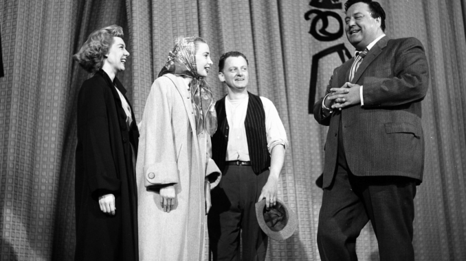 Joyce Randolph, Audrey Meadows, Art Carney and Jackie Gleason on stage after the 'The Jackie Gleason Show'